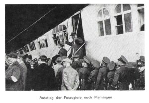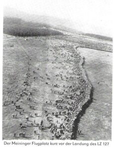 Das „Meininger Tageblatt“ konnte in seiner Ausgabe Nr. 213 vom 11. September 1913 die Nachricht verkünden, dass die offizielle Landung des Luftschiffs LZ 127 „Graf Zeppelin“ in der Stadt für den 11. Oktober des Jahres geplant ist. Trotz der hohen Kosten für dieses Ereignis war man im Ort froh, die erste Stadt Thüringens zu sein, in der das Luftschiff landet.
