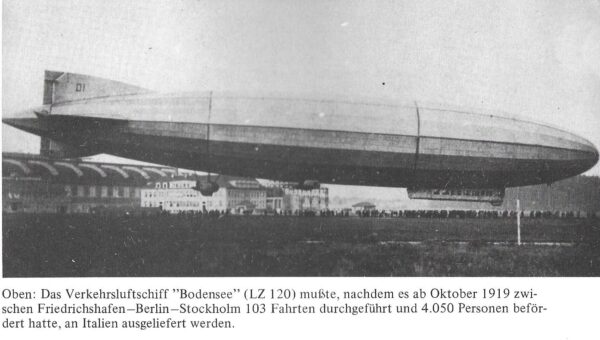 In den Jahren 1919 und 1920 wurden in Deutschland die Luftschiffe LZ 120 „Bodensee“ und LZ 121 „Nordstern“ gebaut. Das Verkehrsluftschiff „Bodensee“ führte noch 103 Fahrten durch und beförderte dabei 4050 Personen. Insbesondere gab es den Linienverkehr zwischen Friedrichshafen und Berlin. Hier wurden zu einer Zeit Passagiere und Post befördert, als durch die revolutionäre Situation in Deutschland andere Verkehrslinien unterbrochen waren.