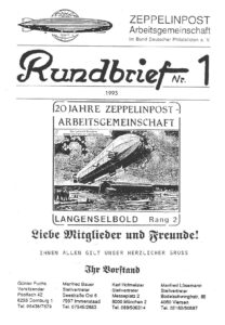 Am 24.3.1990 wurde ein neuer Vorstand der ARGE Zeppelinpost gewählt. Zum Vorsitzenden wurde Günter Fuchs und zu seinen Stellvertretern Manfred Bauer, Karl Hofmeister und Manfred Lösemann gewählt. Für Finanzen stand Peter Augat und für die Kontakte in das In- und Ausland Peter Hagedorn, für das Protokoll Hans-Georg Mencke und für die Rundsendungen Siegfried Scheike in der Liste.