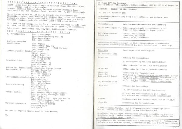 Von Günther Passet, dem kommissarischen Geschäftsführer der ARGE und Verantwortlichen für Presse und Öffentlichkeitsarbeit wurde auf das Jubiläum der Arbeitsgemeinschaft verwiesen. Gleichzeitig gab es die Information über die „ZEPPEX`83“ in Neu Isenburg, eine Ausstellung im Rang 3. Im Rundbrief wird auch wieder über Erfolge von Mitgliedern bei anderen Ausstellungen berichtet und es wird der aktuelle Vorstand vorgestellt.