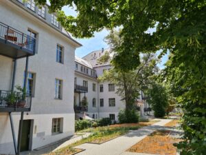 Mittlerweile sind erste Bereiche fertig und die Eigentumswohnungen wurden bezogen. Durch den bestehenden Denkmalschutz sind die Häuser in der äußeren Ansicht mit Fenstern und Fassadenelementen schön gestaltet worden.