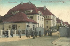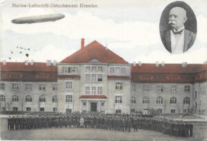 Zeppelin-Freunde kennen die Karten und Belege vom Städtischen Land- und Wasser-Flugplatz in Dresden-Kaditz. Gleich daneben befand und befindet sich der Ortsteil Uebigau, der wiederum durch zahlreiche Abbildungen der Kasernen der verschiedenen Luftschifferbataillone und der Funker-Kaserne bekannt ist. Die folgende Karte zeigt den damaligen Eingang zum Gelände.