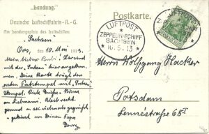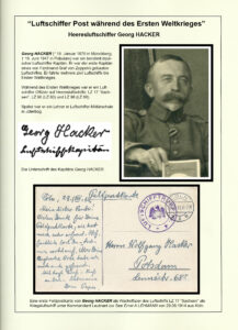 Georg Hacker war sehr schreibfreudig und hat seiner Frau, seinem Sohn Wolfgang und Freunden gern Karten als Post von Bord der Luftschiffe zukommen lassen.