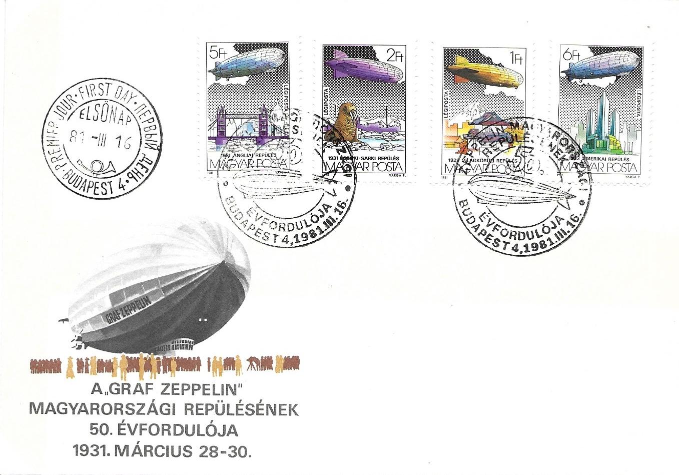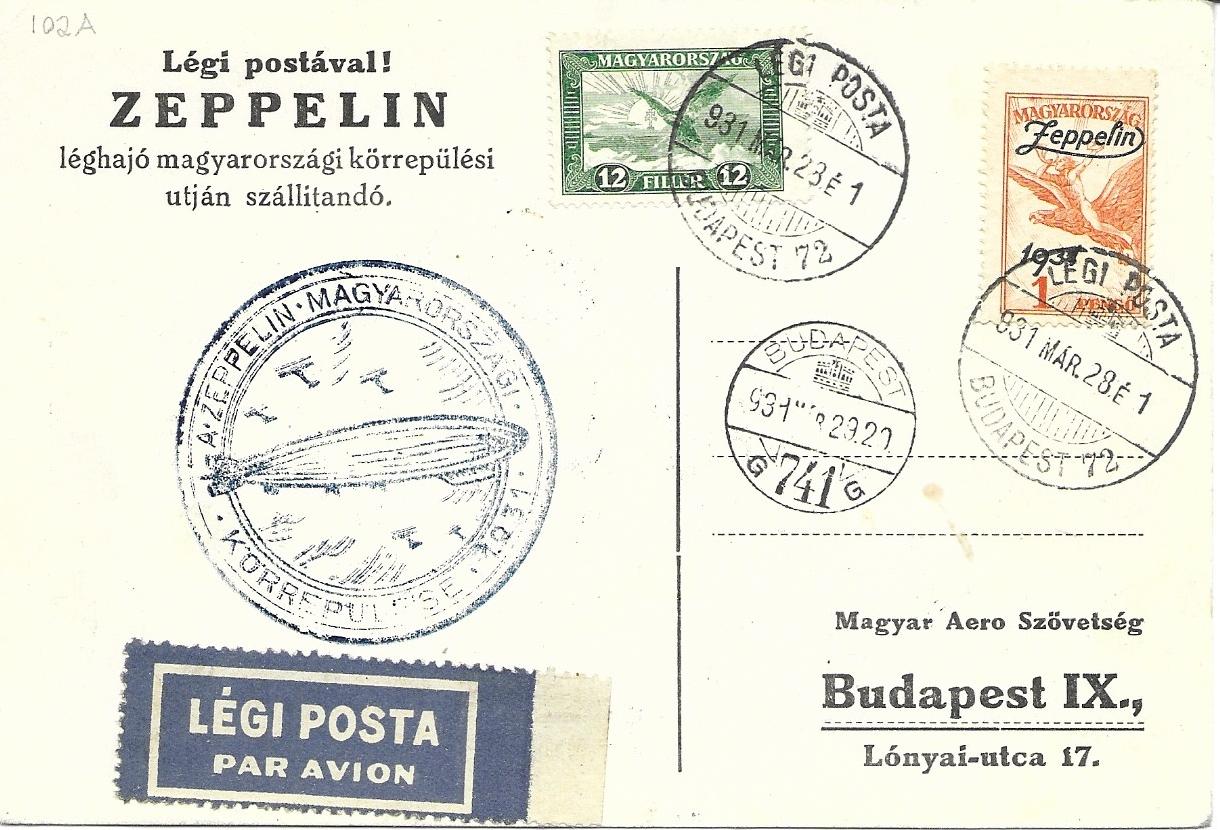 Mit der Landungsfahrt in die Hauptstadt Ungarns, nach Budapest, begann die Fahrt-Saison des Jahres 1931 für das Luftschiff LZ 127 „Graf Zeppelin“. Am 28.03.31 fuhr es von Friedrichshafen nach Budapest. Der folgende Brief wurde in Friedrichshafen aufgeliefert und war für diese Etappe bestimmt. Er trägt den roten Sonderbestätigungsstempel und in gleicher Farbe den ungarischen Sonderankunftsstempel. Abgestempelt am Abfahrtsort am 28.3.31 wurde er mit dem Poststempel von Budapest am 29.03.31 versehen. Gekennzeichnet ist er unten links als Brief vom Briefmarkenhaus Wilhelm Sellschopp aus Hamburg, das bereits 1891 gegründet worden ist.